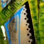 About: I found this image in Medellin’s 30th Street Canal, one of the largest in the city. There were 4 images side by side a meter or so apart, all in the same palette. Finding the right size for a print is part of the process. This one clearly wanted to be intimate, to invite the viewer into its space and come in close. My working title is ‘On a green field…’
